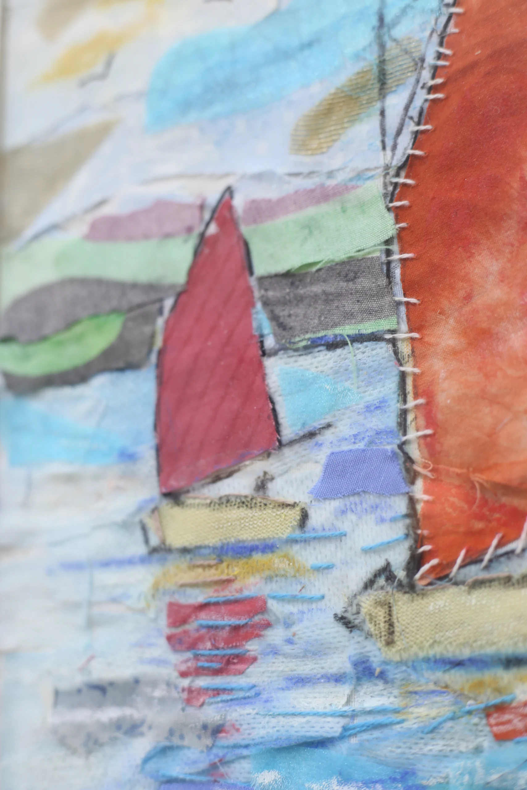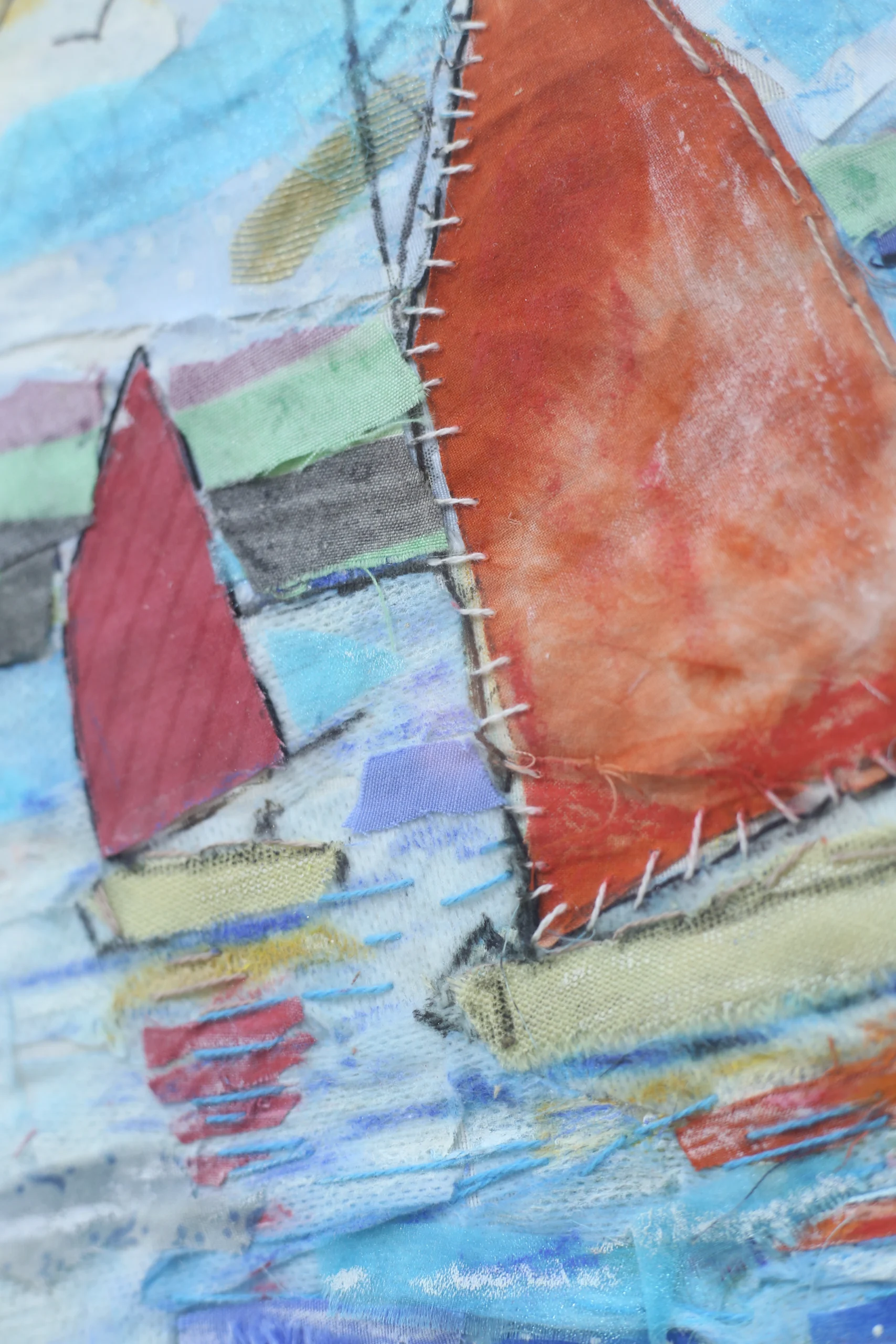 Vibrant Sailboats Framed Original Art / Mixed Media